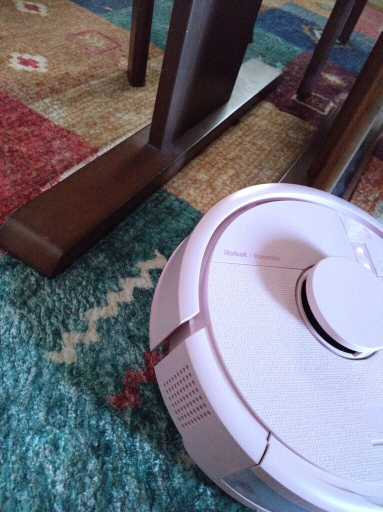 私の部屋はルンバ仕様で導線を遮るものはありませんが、さっそく連れて行った妹宅では、まあまあ邪魔なものたちがあります。作業で動き回る際、先代ルンはたまに力任せに物を押し出したり、薄いマットを巻き込んだり持ち上げたりしておりました。