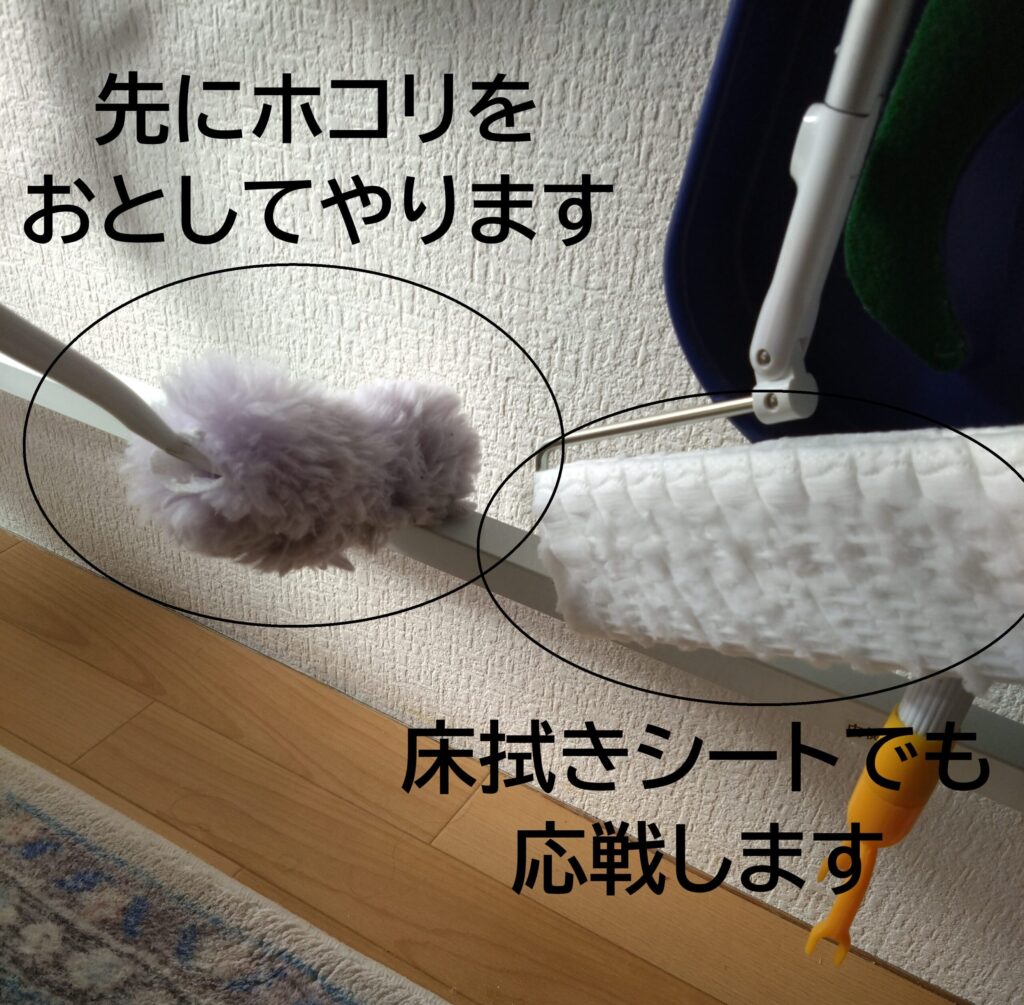 私は出勤前に軽くそこら中をハンディモップをかけて、容赦なく床にゴミを落としてやります。また床の角や隅でルンバが苦手な場所は、床拭きシートなどでルンバの導線になるところにゴミを寄せてやります。そしてクリーンボタンを押して出勤!